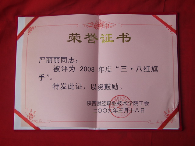 严丽丽被评为2008年度“三八红旗手”