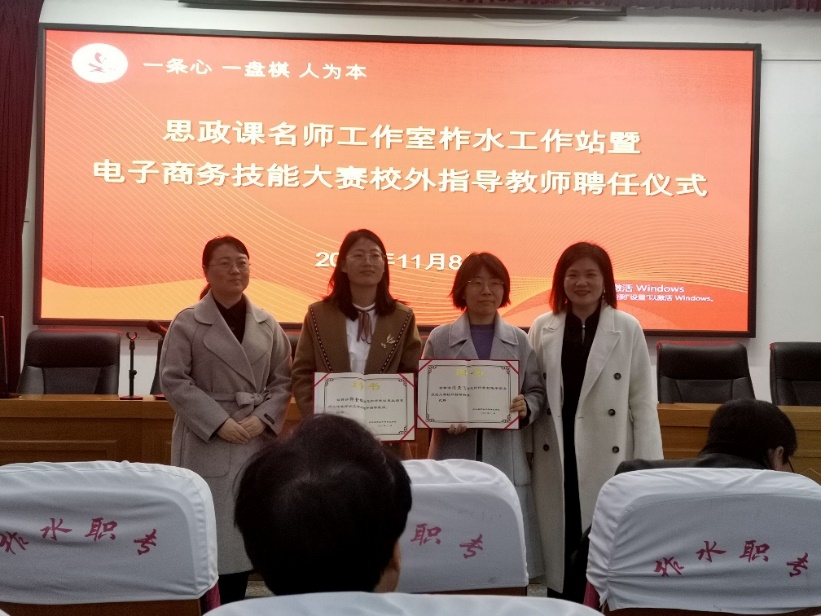 柞水县职教中心副校长为我校教师颁发思政课名师工作室柞水分站校外指导教师聘书