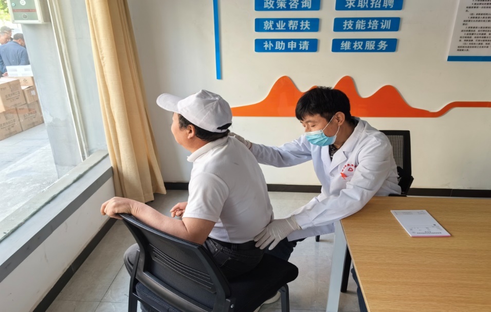 在整个义诊活动中,问诊的人络绎不绝。社区干部和驻村干部穿梭其中,引导就诊人员,协助行动不便的患者就医。我校驻村干部王飞、吕斌积极对接义诊活动,使此次活动顺利进行。