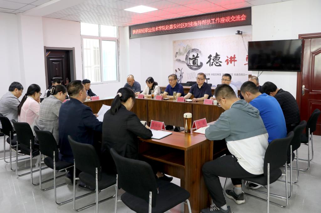 高玉峰、程书强首先来到柞水县下梁镇嘉安移民社区,组织召开乡村振兴工作推进会,就今年的帮扶重点工作进行商讨,明确近期帮扶工作安排和下一步工作举措。下梁镇人大主席王晓珍、嘉安移民社区支部书记兼社区主任孙文金对我校的帮扶工作高度肯定、衷心感谢,强调我校的人才帮扶、产业帮扶、文化帮扶等措施扎实有效,让群众实实在在受益得实惠。