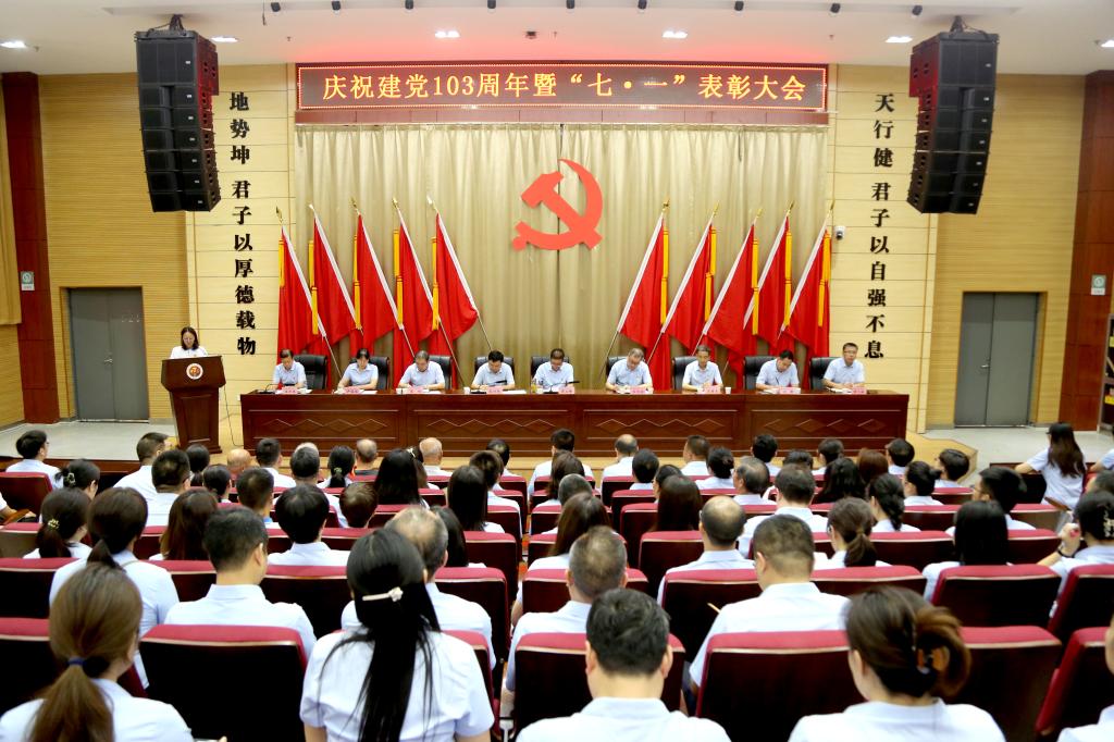 7月1日下午,我校在学术报告厅隆重召开庆祝建党103周年暨“七·一”表彰大会。校领导班子成员出席会议,全校处科级干部、教职工党员和离退休党员、学生党员代表参会。会议由党委副书记朱华斌主持。