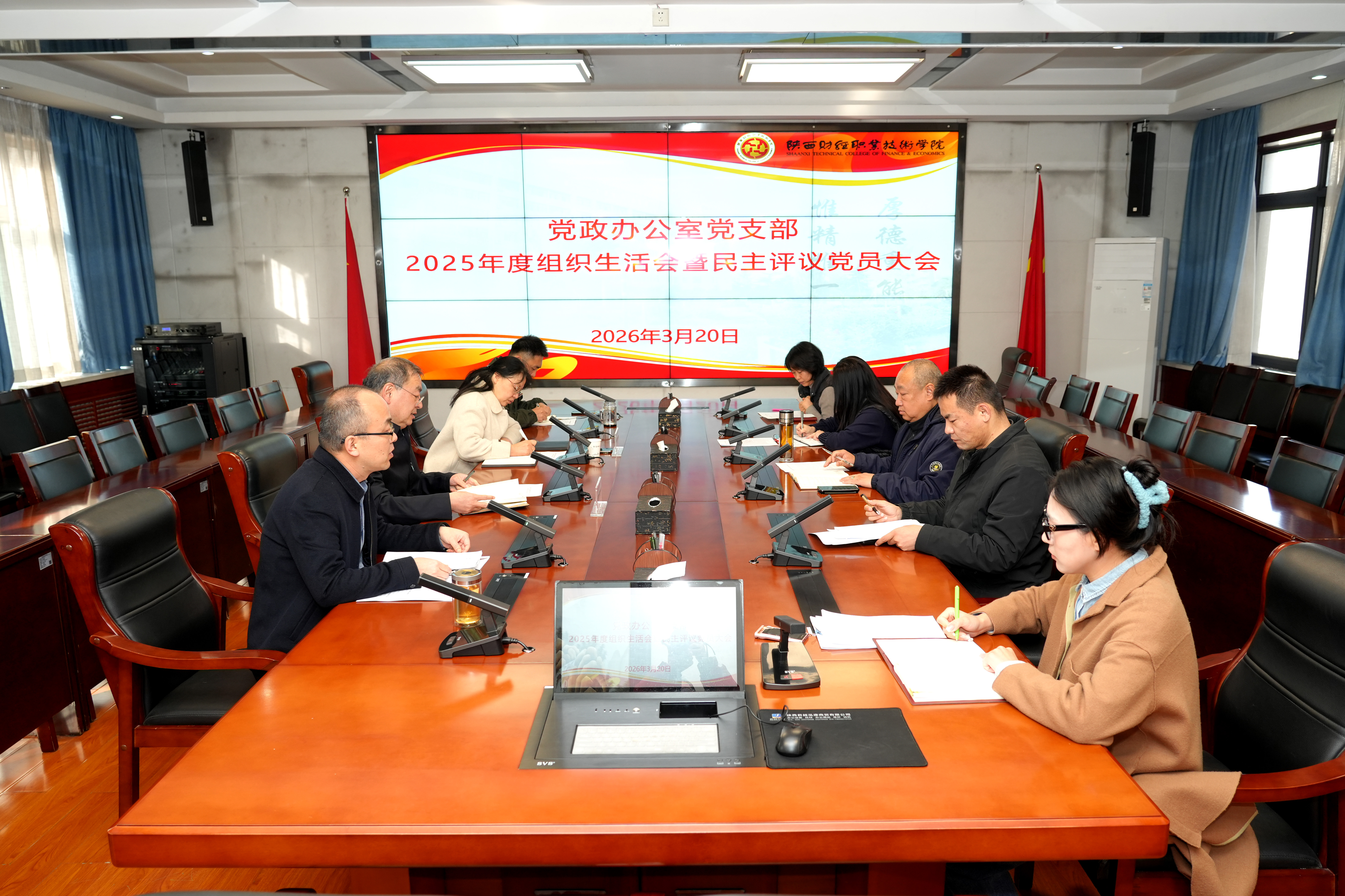 3月20日上午,党政办公室党支部在办公楼4楼会议室召开2025年度组织生活会暨民主评议党员大会。校长程书强以普通党员身份参加会议,校党委委员、党委宣传部部长严丽丽列席指导。会议由党支部书记周辉辉主持。